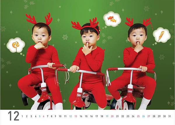 而在年末 爸爸宋一國帶著三個小寶貝一起拍攝的照片 製作成2015年曆啦~
