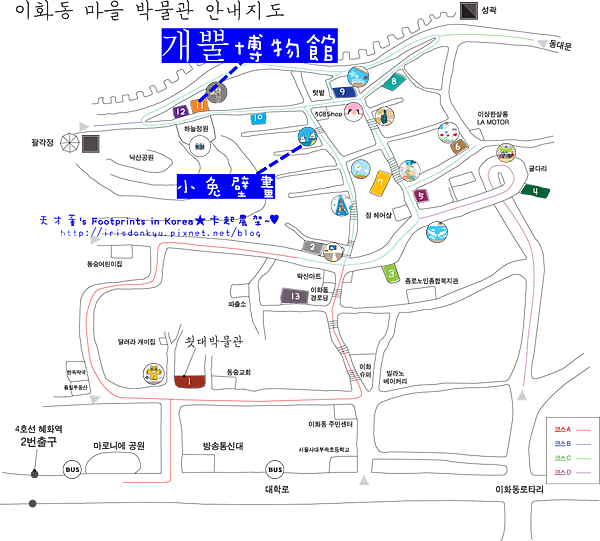因為 它就位於 梨花洞壁畫村 裡 ,名字為「개뿔」壁畫村博物館 喲!!!